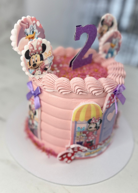 Make her birthday extra sweet with this delightful Minnie Mouse Bow-Tique themed cake! This beautifully customized cake features Minnie’s iconic pink style, making it the perfect centerpiece for a birthday or any young child who loves the magic of Disney.