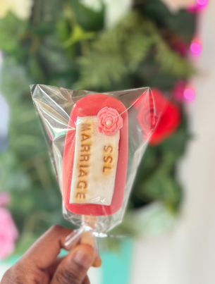 - Custom Message Banner: Each cakesicle features an edible, embossed banner that can be customized with initials, dates, or short words (e.g., MARRIAGE SSL).